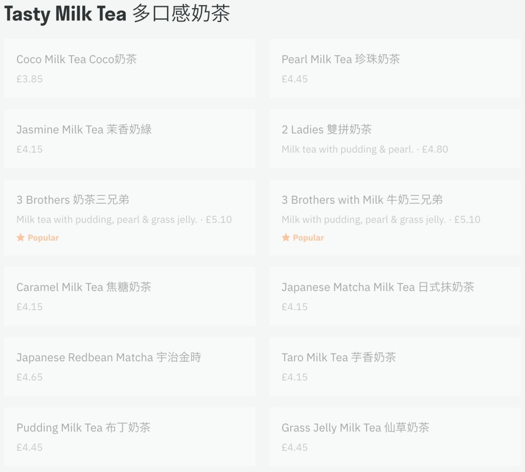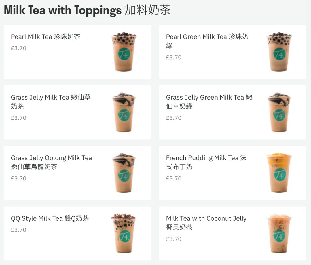常规的茶太的奶茶价格: £3.85镑/杯(约34元一杯)