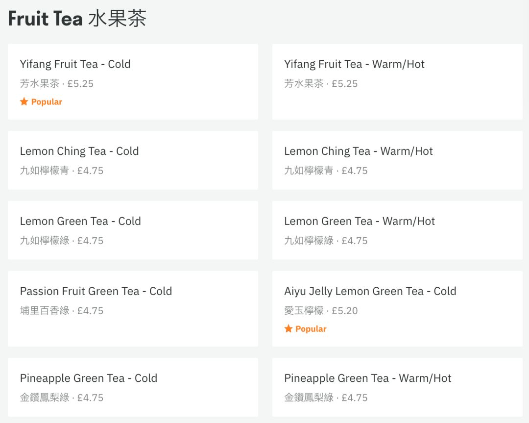 常规的一芳水果茶 £5.25镑/杯(约:47元一杯)
