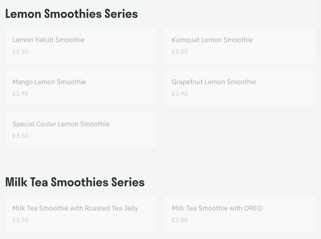 常规的快乐柠檬奶茶 £3.70镑/杯(约:32元一杯)