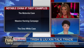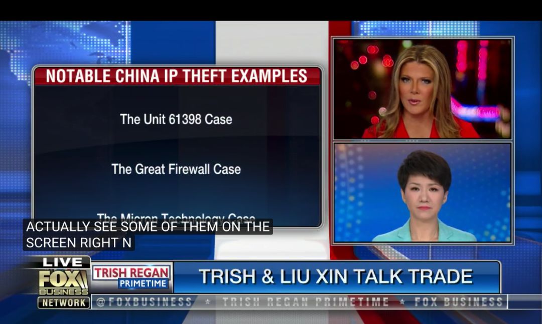 翠西:我也同意。我们现在谈一谈最重要的问题,中美知识产权问题。我们都知道窃取别人的东西是不对的。中国是WTO的成员,FBI有很多证据证明中国从美国窃取了很多机密,涉及金额达到上亿美元。