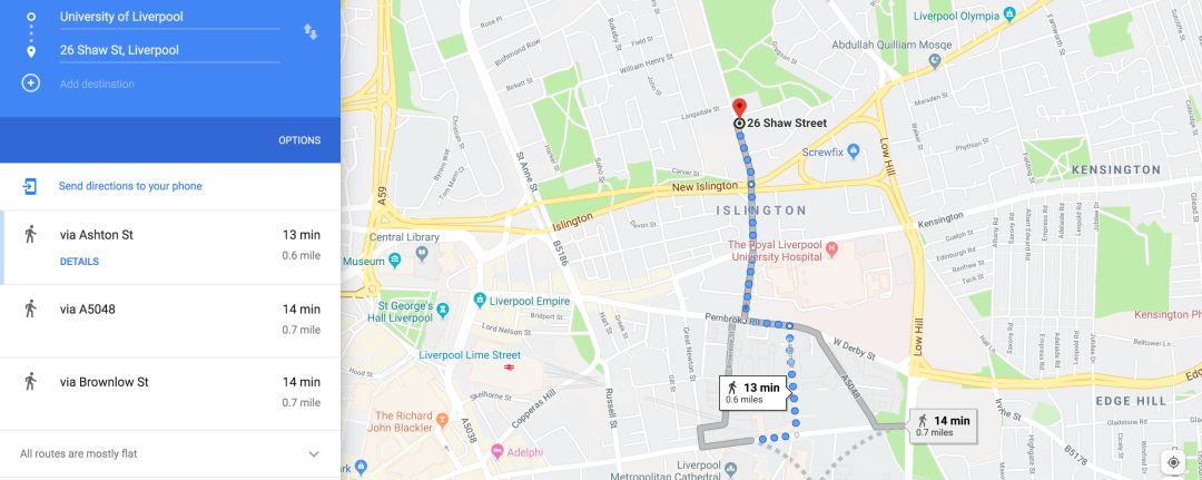13分钟到达利物浦大学