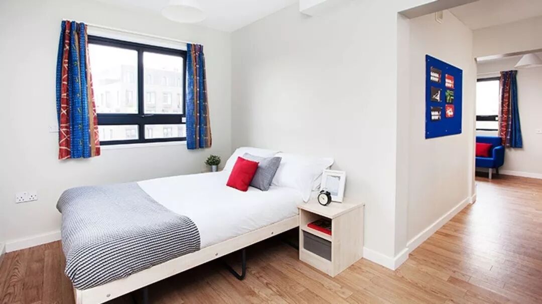 每间房间都有一张大床、宽敞的学习空间和免费的无线网络,单间套房有独立的现代化厨房设施,多人套房则是与其它学生共用一间厨房。