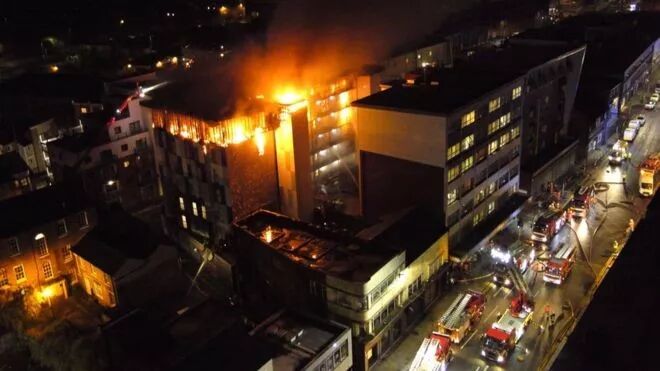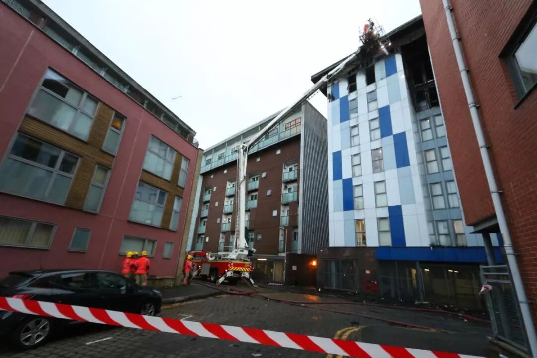 The Cube 学生公寓,是一个6层楼的学生公寓,主要是居住的波尔顿大学的学生,昨夜200消防员参与救火,一人被云梯救助,两人当场直接在现场被急救。