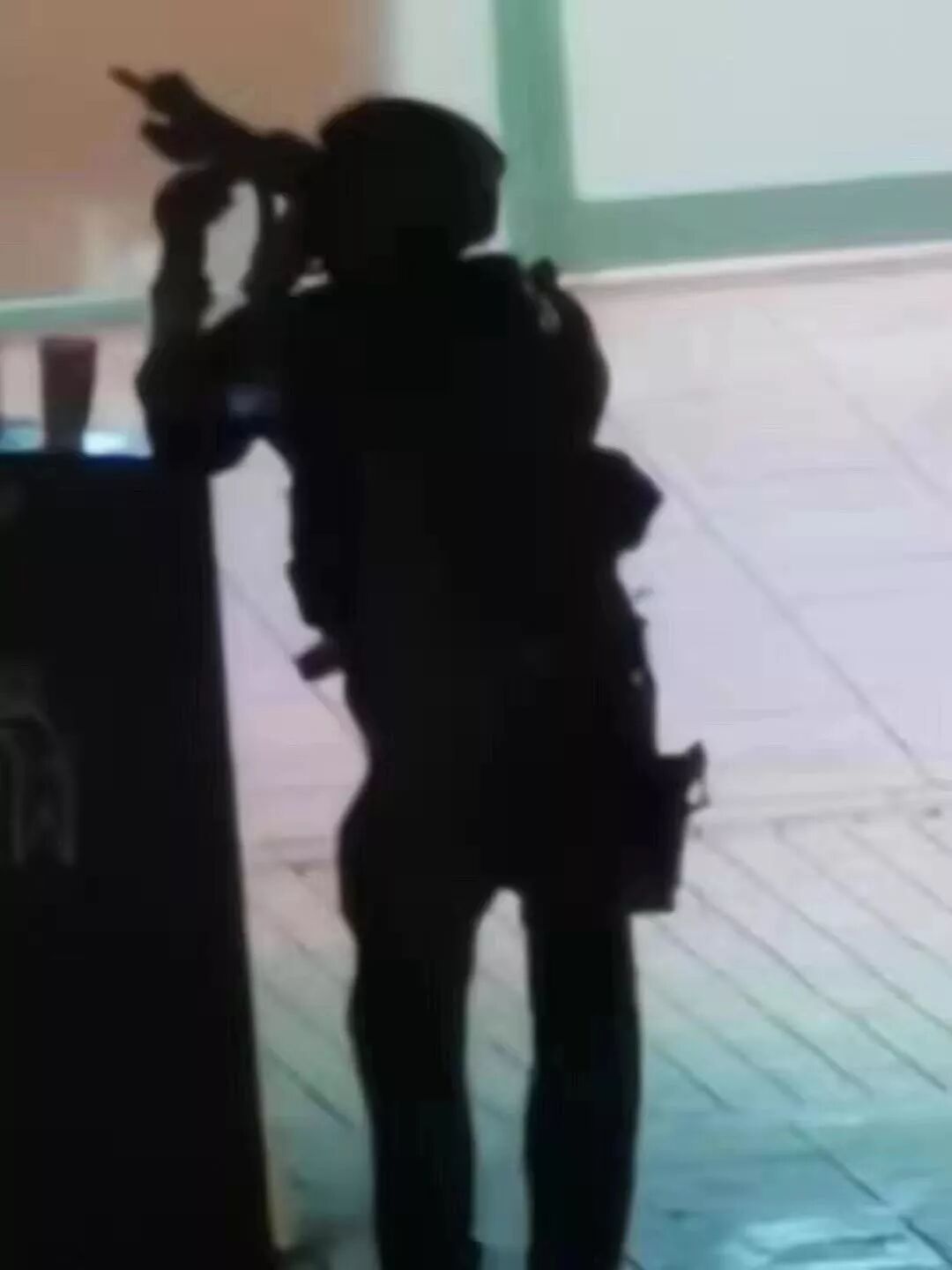 据现场报道,目前没有人伤亡,但是警察在开始挨个的搜身是否有枪支!