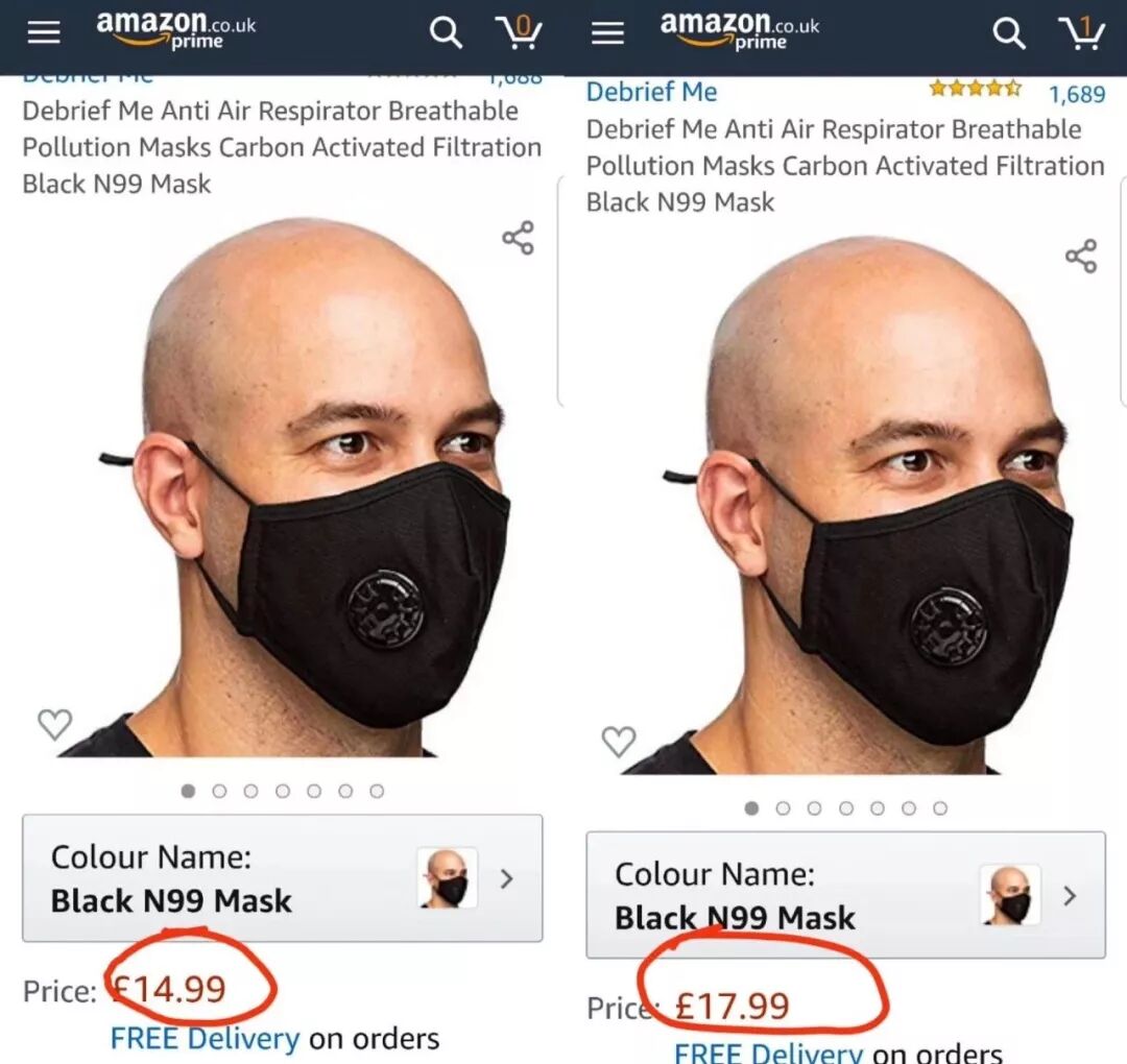更有同学说,亚马逊的口罩一夜间也开始涨价了...