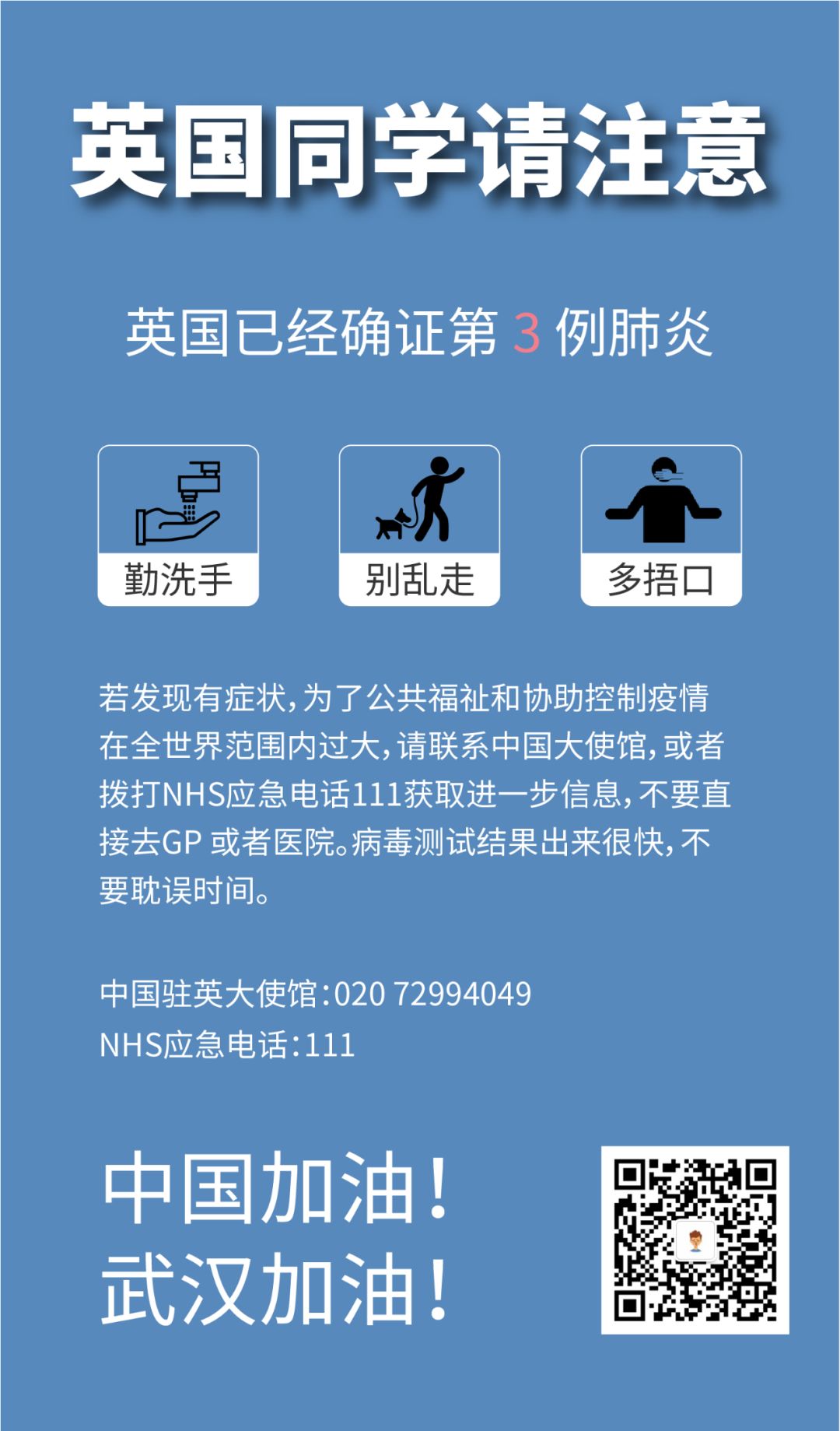 【BBC消息】英国第3例肺炎确诊,请大家注意安全!
